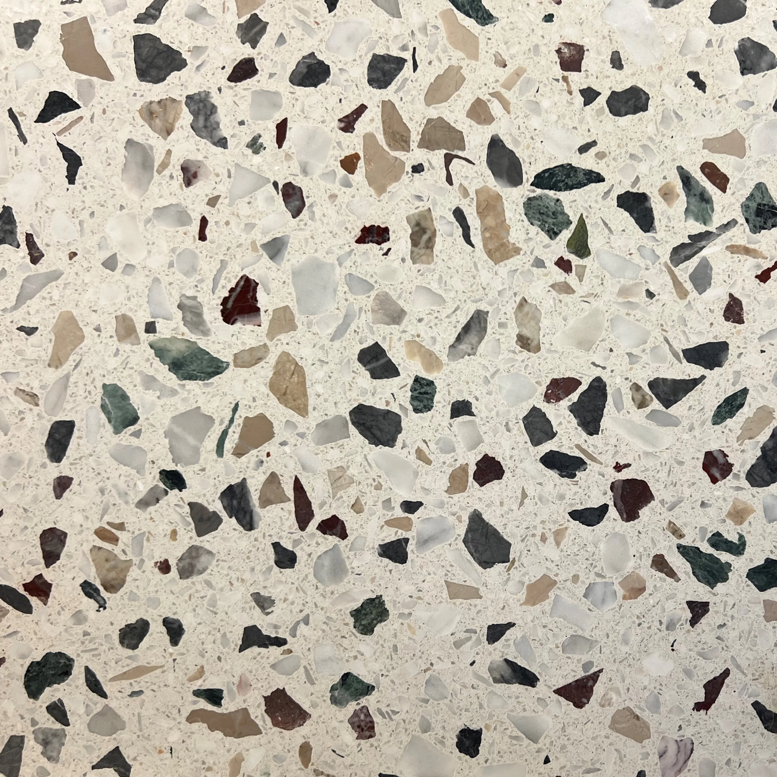 Gussterrazzo-Rezeptur mit zementgebundenen Bindemittel und Marmorsplitt.
