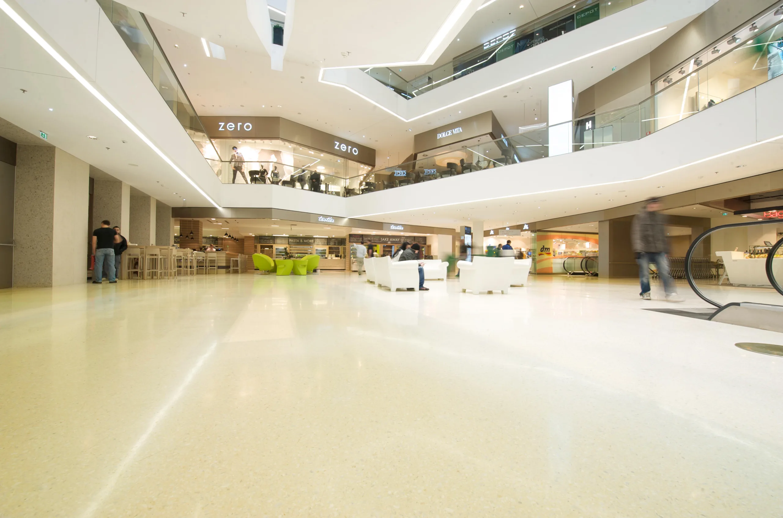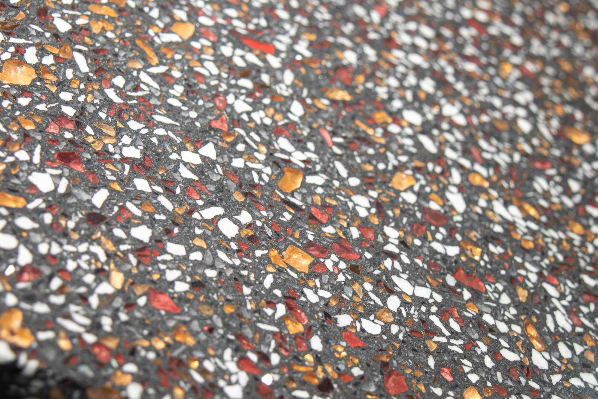 Dank der fast grenzenlosen Flexibilität in der Gestaltung, mit verschiedenen Marmorzuschlägen, unterschiedlichen Farbmöglichkeiten und dem farbigen Glasgranulat, wird die Terrazzo Fertigmischung allen Designansprüchen gerecht und fügt sich jedem Raum, jedem Design und jeder Anforderung.
