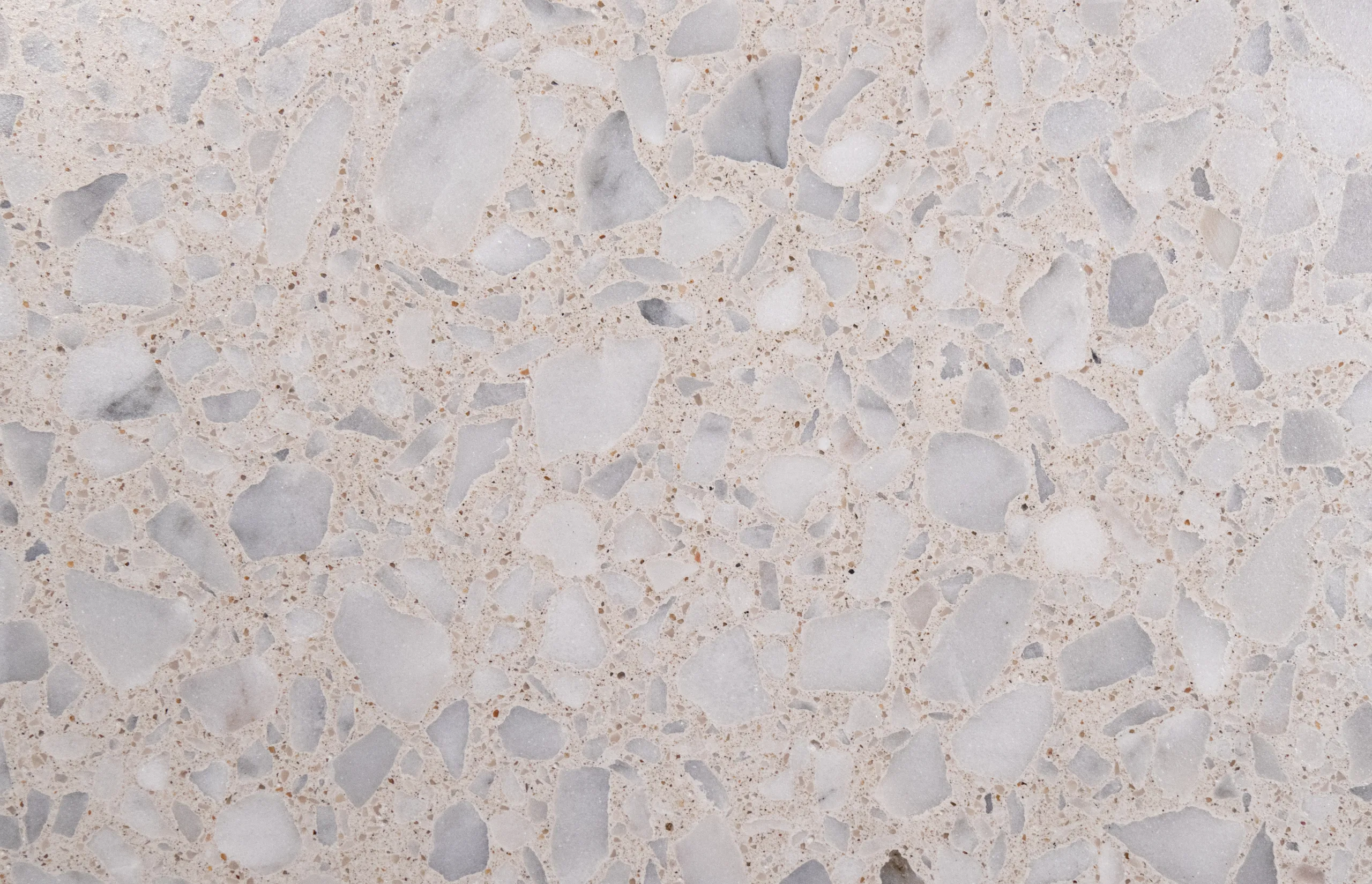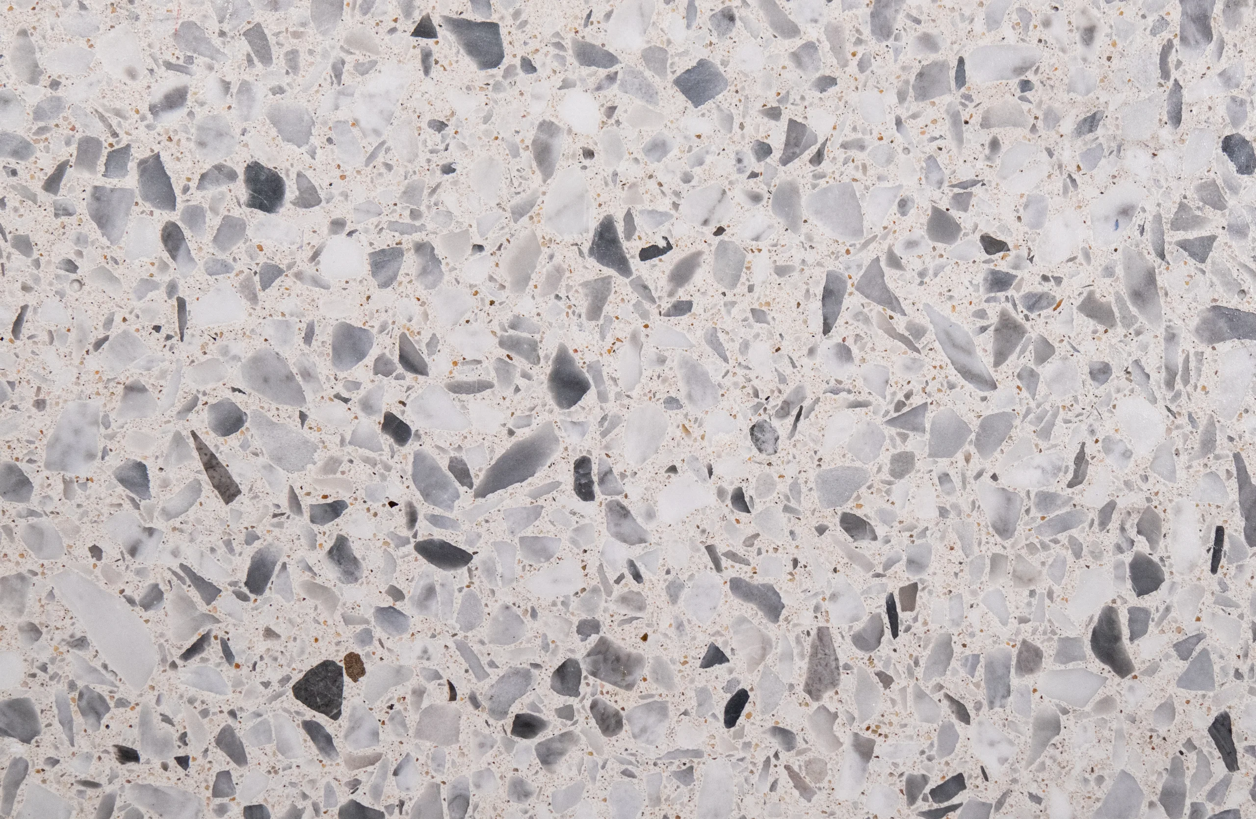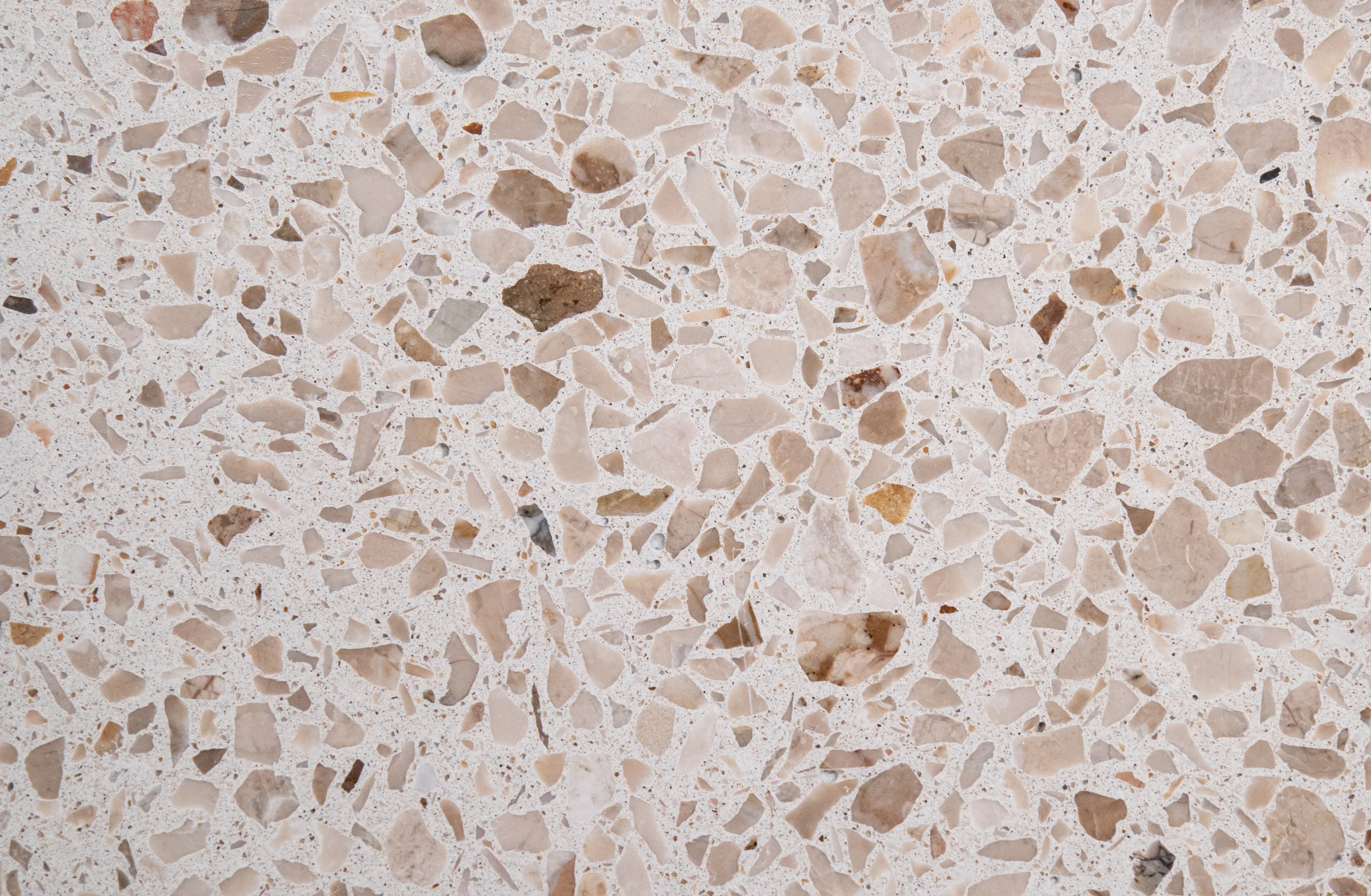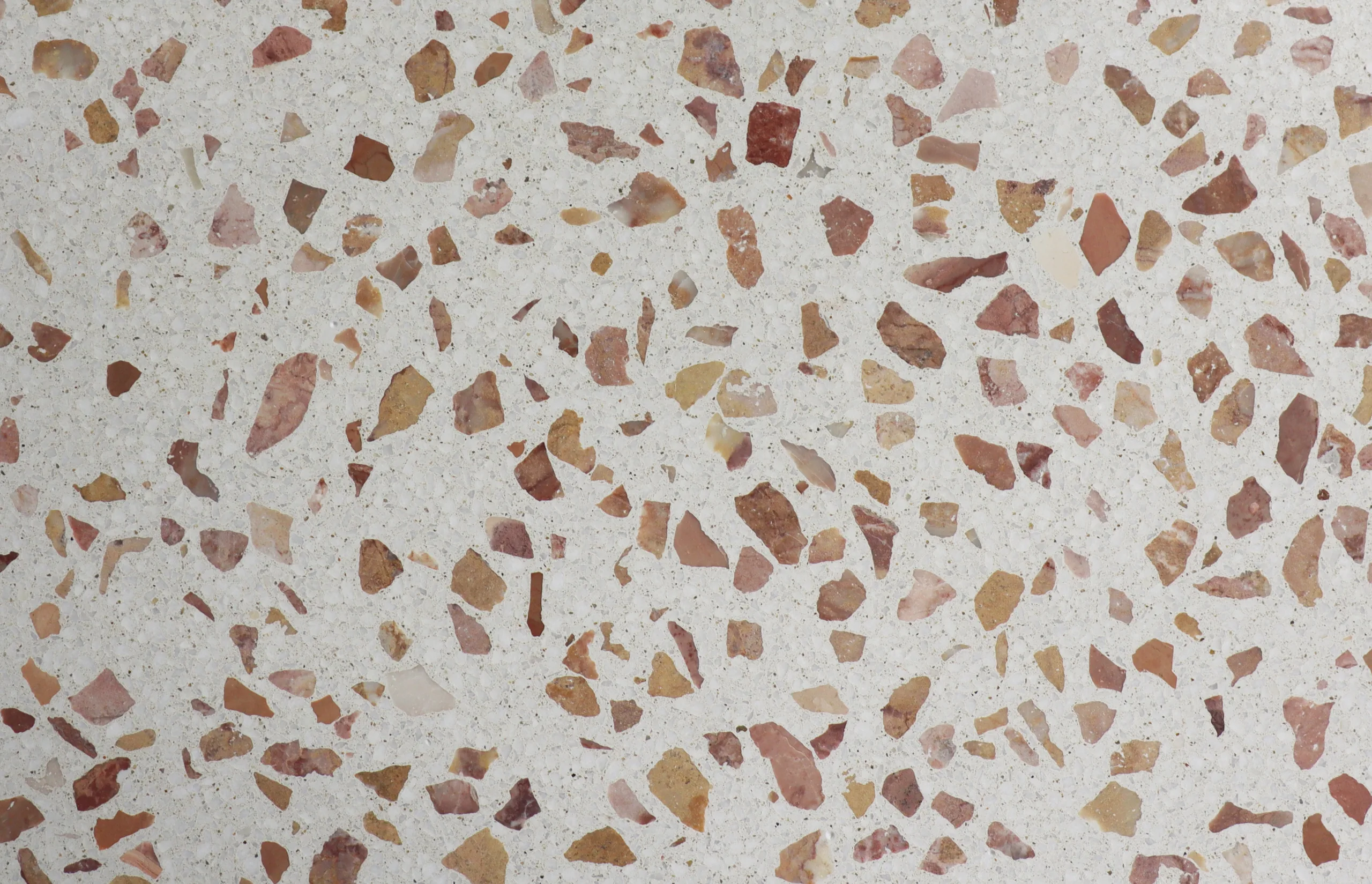 Dank der großen Auswahl an Marmorsorten und Farben bietet doppo Ambiente Gussterrazzo nahezu grenzenlose Gestaltungsmöglichkeiten. Das Erscheinungsbild wird durch die Farbe sowie die Auswahl, Größe und Menge der charakteristischen Marmorzuschläge individuell geprägt.