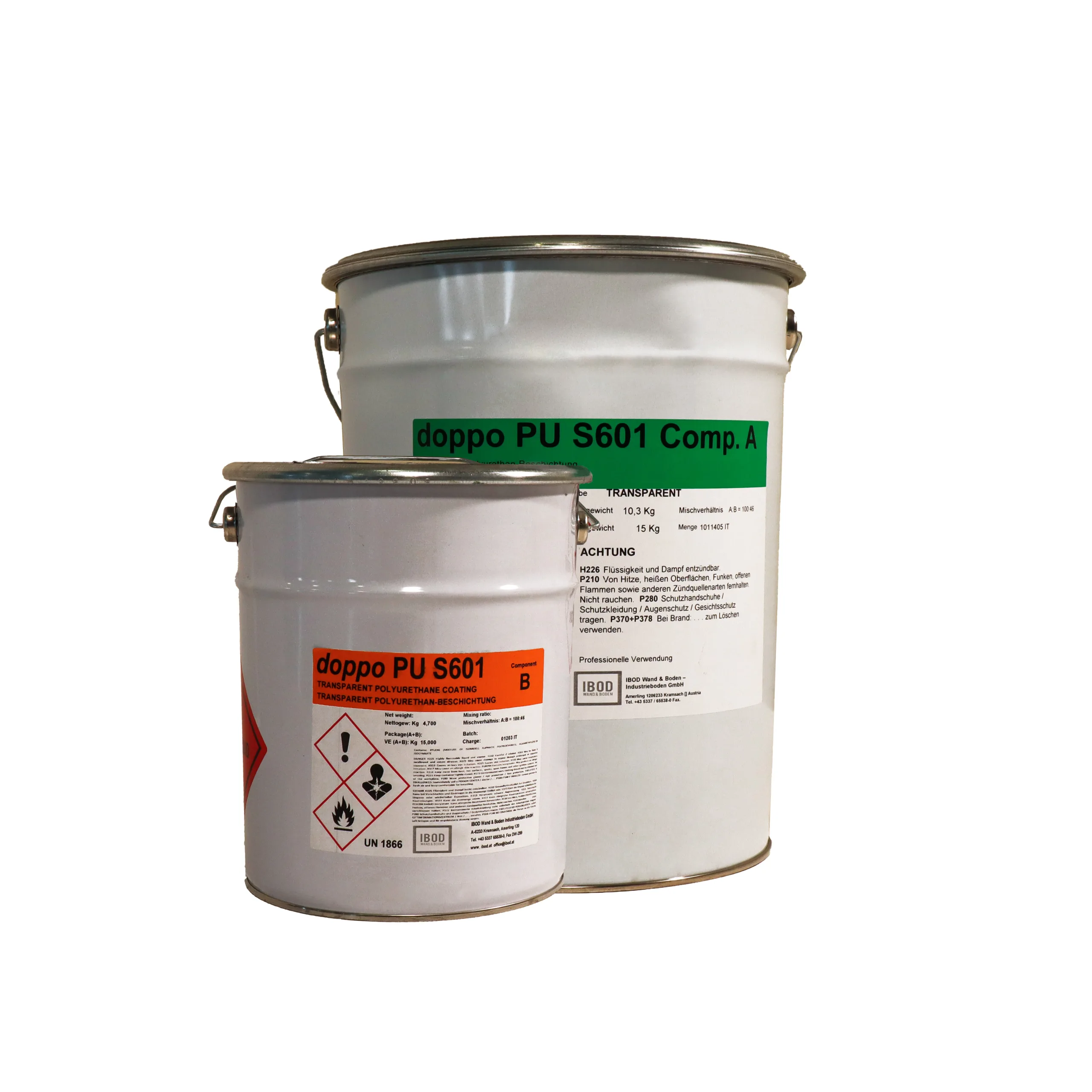 - Verpackung: Komp. A+B = 15 kg Gebinde; Gebinde A = 10,3 kg; B = 4,7 kg
